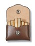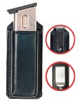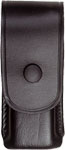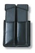 Eine geschlossene Magazintasche aus Blankleder mit Druckverschluß. Die neuartige Aufhängung sorgt für ein schnelles Auf- oder Abklipsen der Magazinbox am Gürtel.