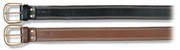 Stabiler, genähter Blankledergürtel mit polierter Kante und massiver Schnalle.
